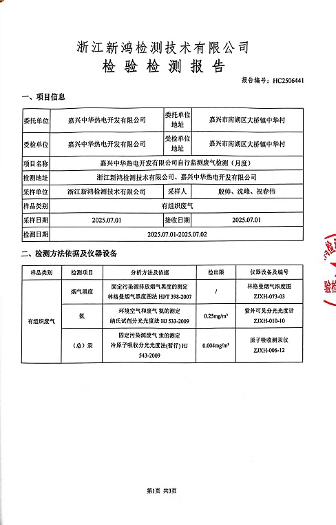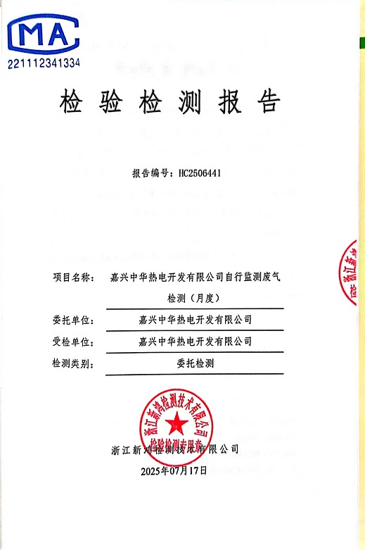 - 中華熱電7月廢氣檢測(cè)報(bào)告